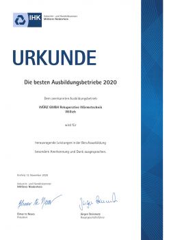 Als anerkannten Ausbildungsbetrieb hat uns die Industrie- und Handelskammer Mittlerer Niederrhein eine Urkunde verliehen.