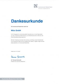 Die Hochschule Niederrhein dankte uns für unser Engagement und die finanzielle Unterstützung von zwei Stipendiaten im Rahmen des Deutschlandstipendienprogramms.